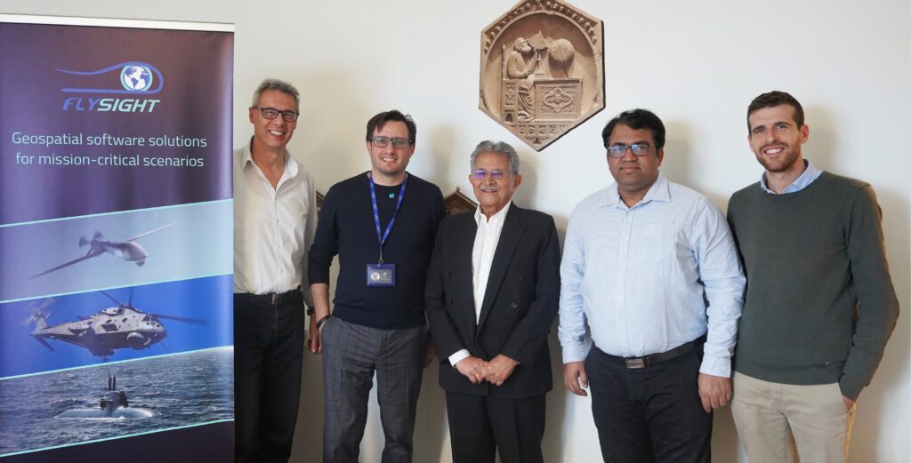 From left: Emilio Simeone, President of FlySight, Andrea Masini, CEO of FlySight with the Founder of Suretech International Mr. R.K. Channa and his Vice President Shashank Jha and Mattia Carpin, Head of Engineering at FlySight.
